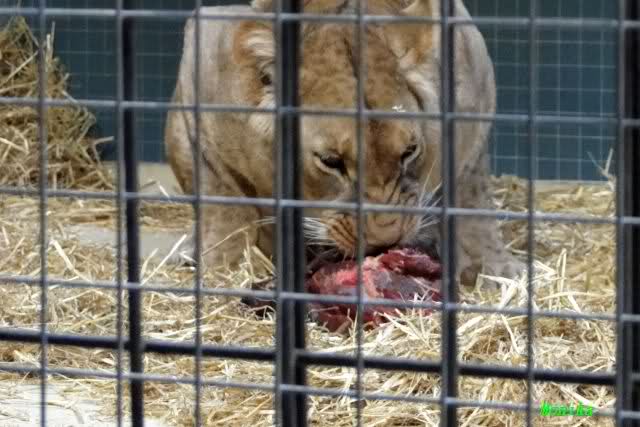 Leider gibt es über die drei kleinen Löwenbabys heute auch nichts positives zu berichten. Ich war heute in Abständen dreimal im Raubtierhaus. Am Vormittag lag Aketi im Käfig und schlief tief und fest, während die 3 Kleinen in der Babybox jämmerlich am Schreien waren. Aketi ließ sich nicht stören. Gegen Mittag das gleiche Bild.