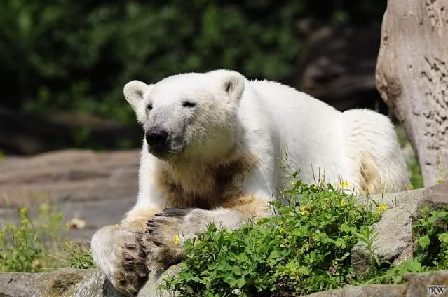 Heute waren wir erst nach der großen Show im Zoo, aber für uns ist ja der Magnet nur Knut, der uns strahlend weiß empfangen hat, er sah aus wie ein Silberstrahl, einfach traumhaft schön!!! Puh, war das heute eklig schwül,auch die Tierchen haben darunter gelitten, und lagen da wie hingebrezelt. Als wir (von der geöffneten) Waldschänke wieder zu Knut gingen, wer lag da (wie immer) auf der Bank?, na?,Käpten-Iglo mit entblößtem schwammigen Oberkörper, total ekelig, sein Hosenstall stand auch auf, und gleich nebenan der Kinder-Spielplatz, "pfui-pfui"!!! Niemand traut sich diesem Menschen etwas zu sagen, der er sofort anmaßend wird,und laut! Dann schreit er immer,Knut komm her, hier ist dein Papa, habe sofort gesagt "Sie" sind absolut nicht Knut sein Papa, wieder freche Antwort!! Wir verstehen absolut nicht, das so ein Mensch überhaupt in den Zoo darf, ist ja eine Belästigung für Mensch und Tier, auch fremde Besucher sind sehr entsetzt über diesen Zoo-Besucher, schade!!!