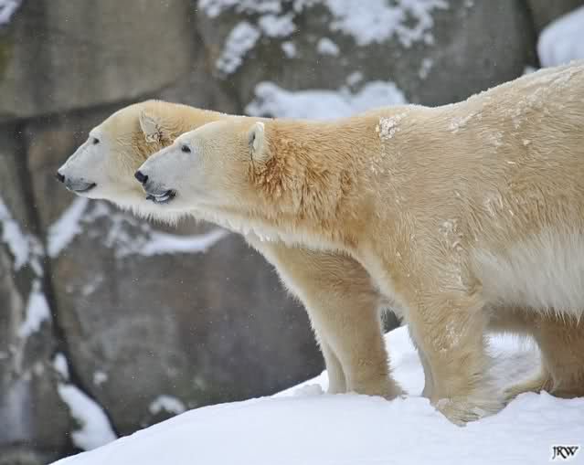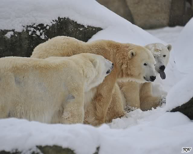 Thank you so much for these beautiful photos and video! Knut and Tosca look so much alike, it is hard for me always to tell them apart (unless I see the toenails!). I find it interesting that (1)Tosca was purportedly Thomas's favorite and (2) he introduced Knut to her and the others when Knut was very young (inside the building, nothing but bars in between so she would have been able to smell him). (3)Now, almost four years later Tosca is the first to approach Knut and in a way that he perceives (accepts) as friendly..... Anyway it is wonderful to see that all four bears appear to be happy and not stressed by this new development.