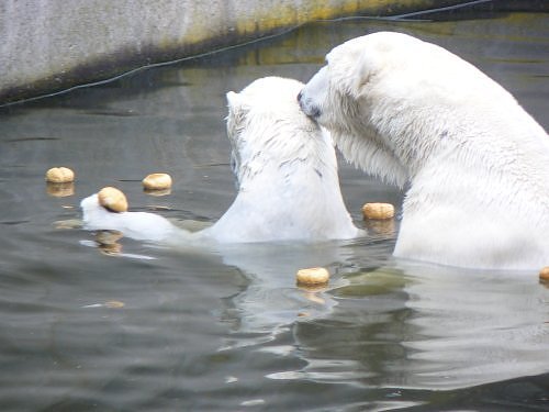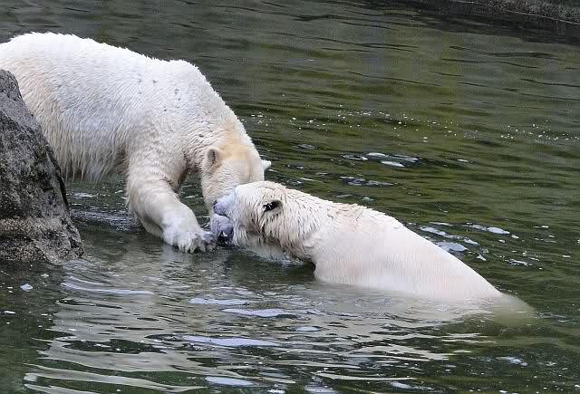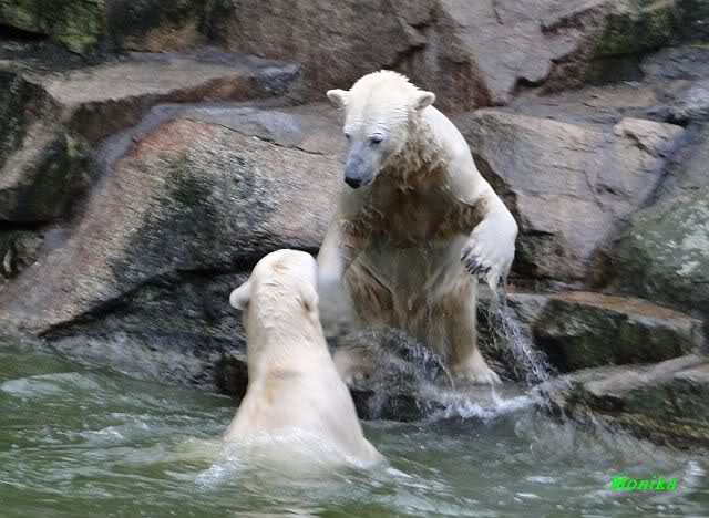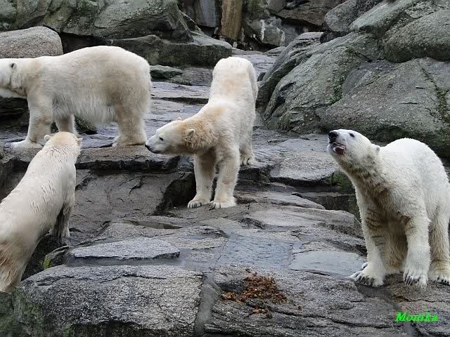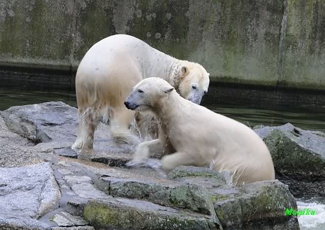 Wow, das war ja heute wieder ein toller Tag bei Knut & Co. Die Fotos zeigen es ja klar und deutlich. Was für eine Entwicklung auf dem Eisbärenfelsen.