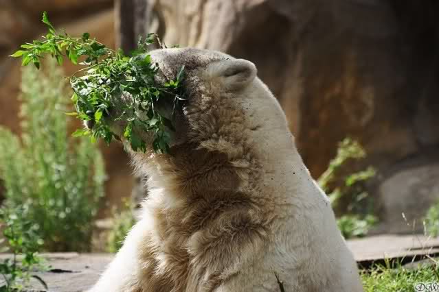 Auch ich war am Samstag Abend nochmal kurz im Zoo. Knut lag wie zu dieser Zeit immer vor seiner Höhle um (meist gegen 17:30 h) Einlass zu bekommen und dann sein Abendessen zu bekommen. Als er merkte, das da nichts passiert erhob er sich und trottete langsam über seine Anlage um hier und da noch etwas Fressen zu suchen, er fand Karotten und Äpfel.