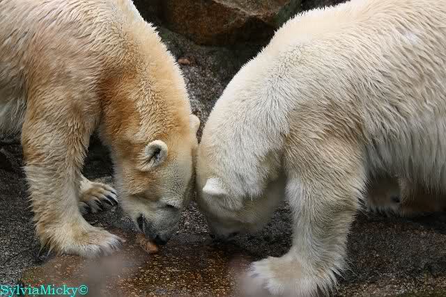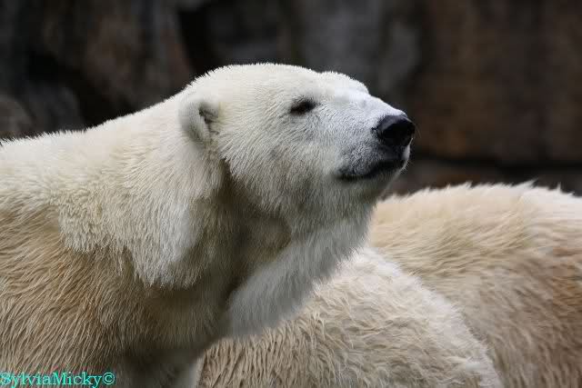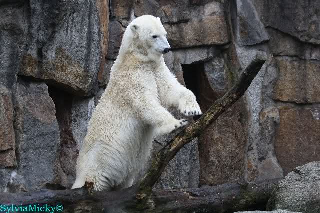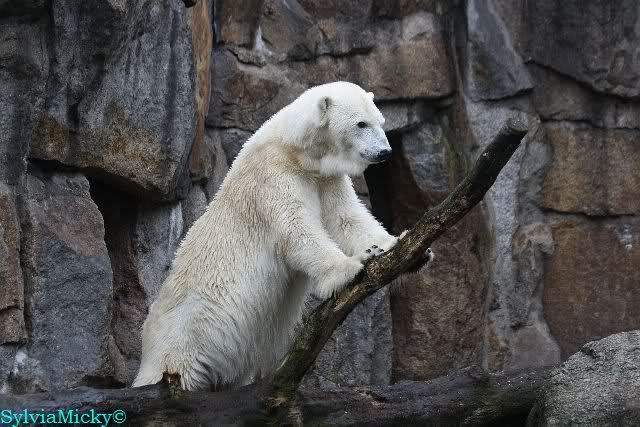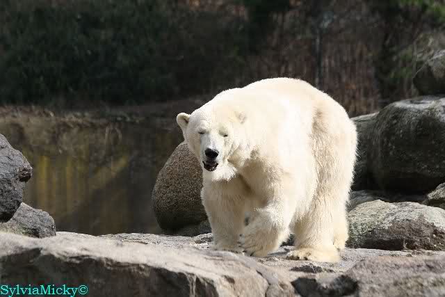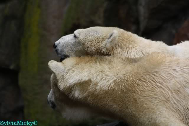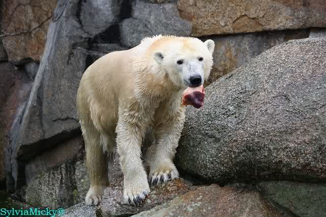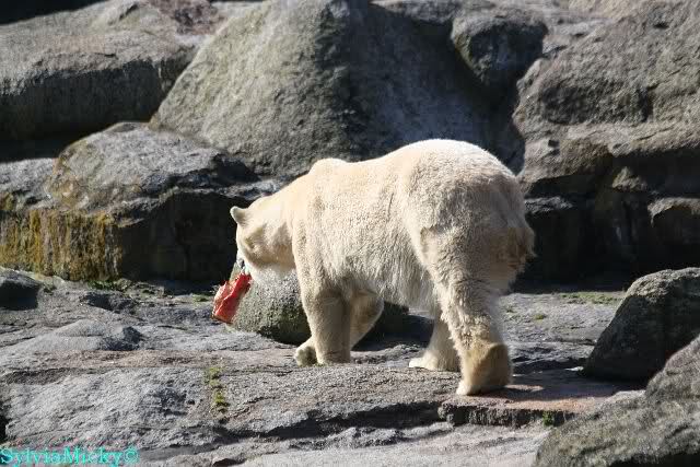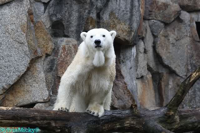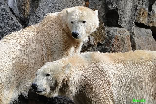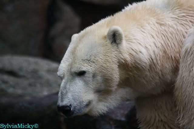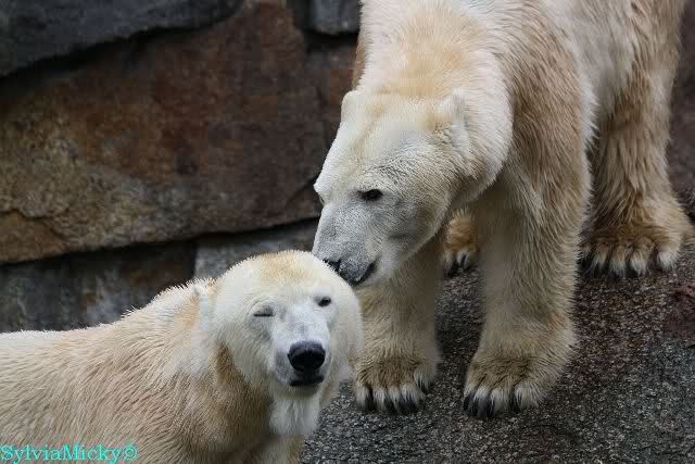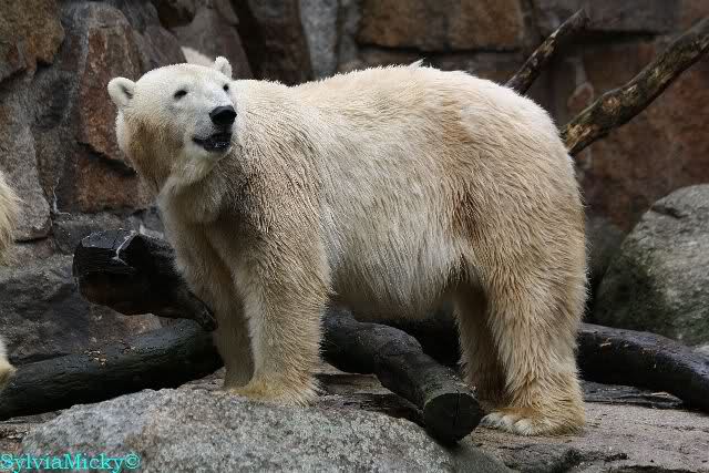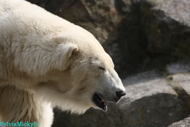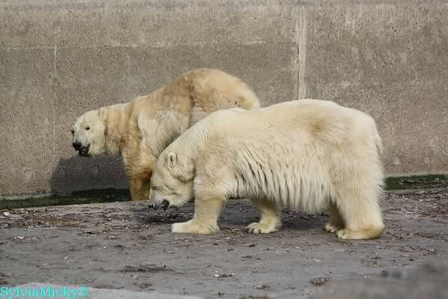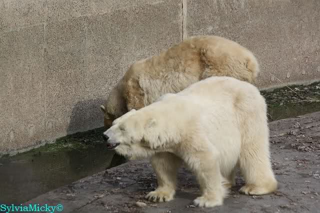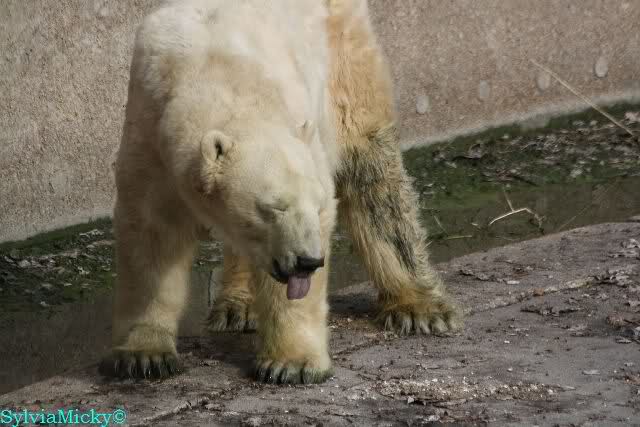 Ich wollte heute eigentlich nicht in den Zoo gehen. Aber eine sehr nette Knutfreundin sagte mir, daß die großen Eisbären auf der kleinen Anlage sind.