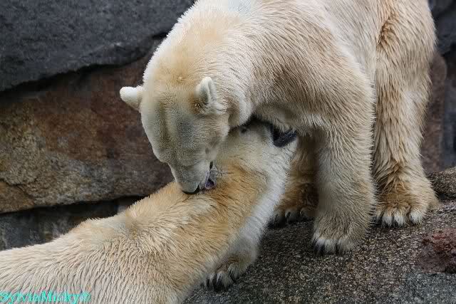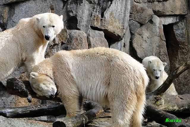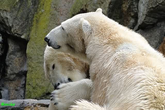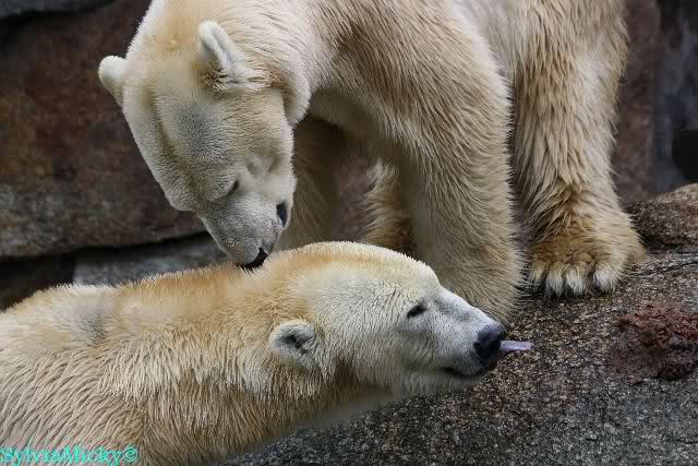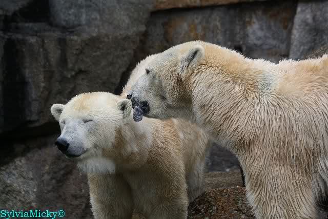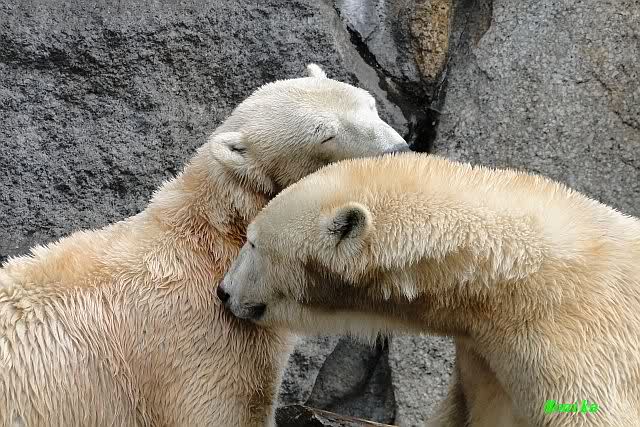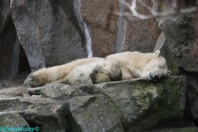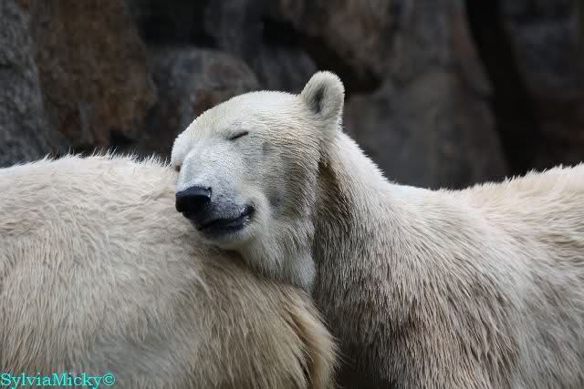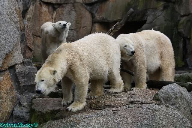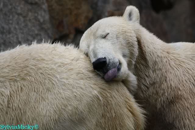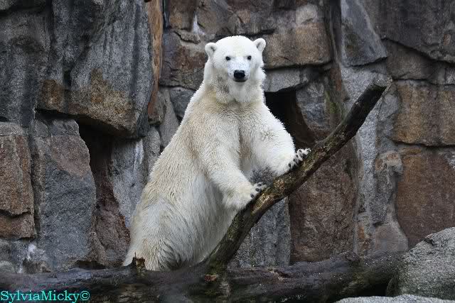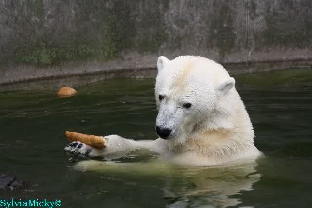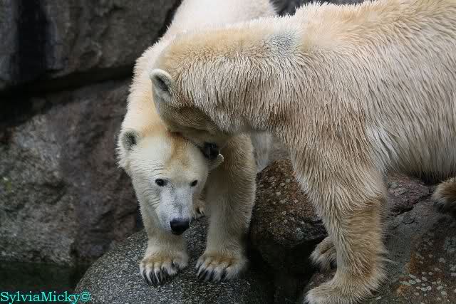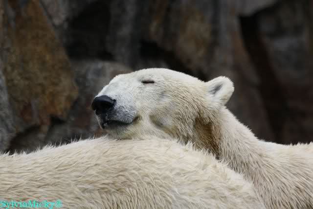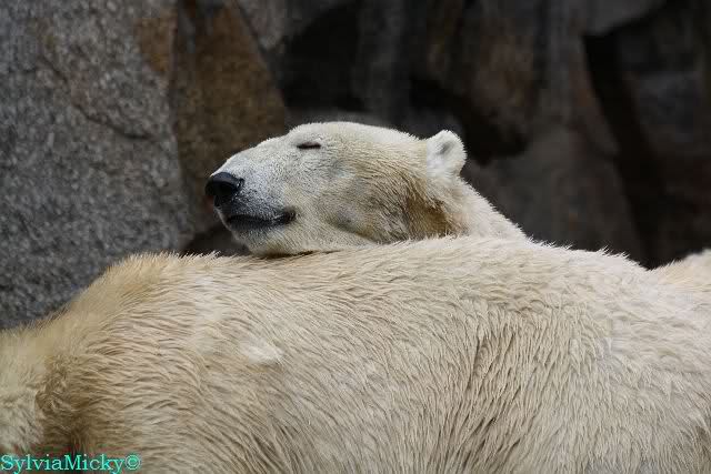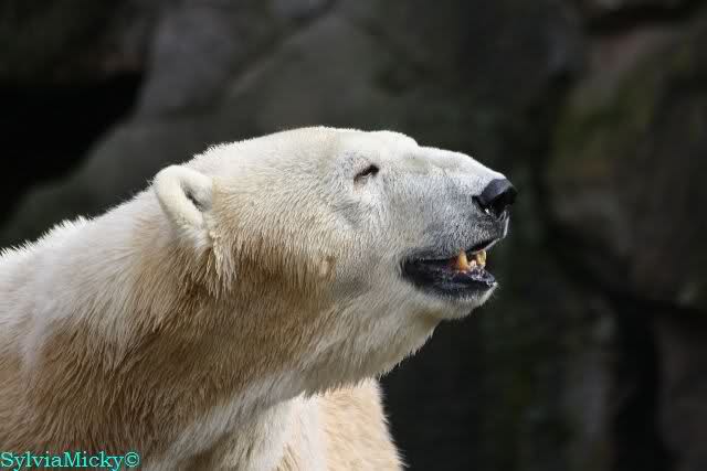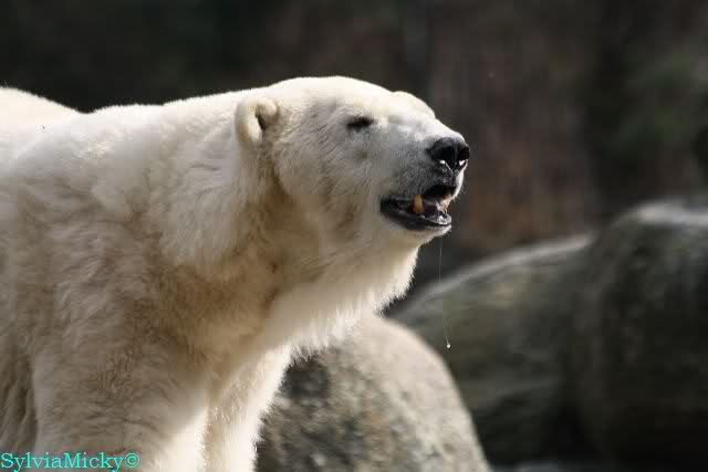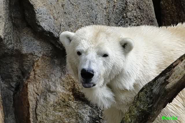 Ich wollte heute eigentlich nicht in den Zoo gehen. Aber eine sehr nette Knutfreundin sagte mir, daß die großen Eisbären auf der kleinen Anlage sind.