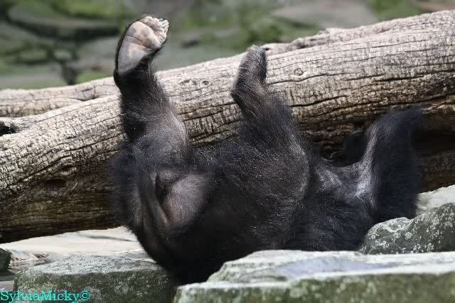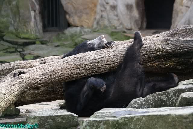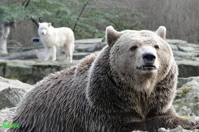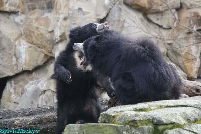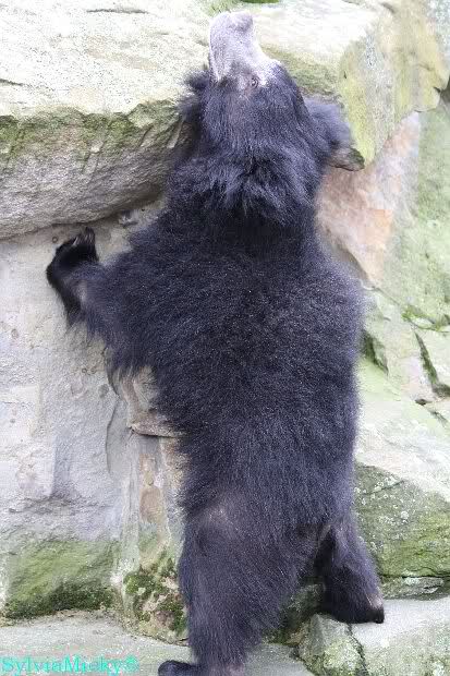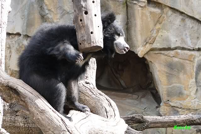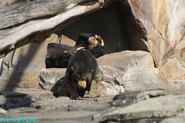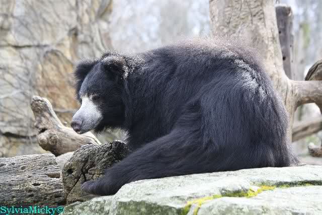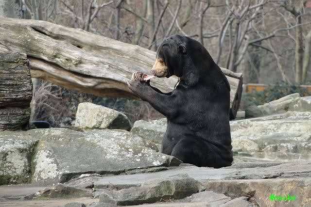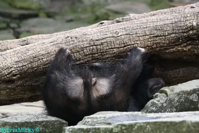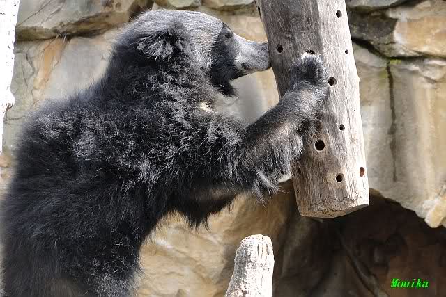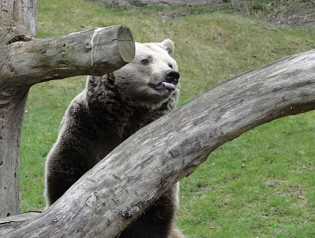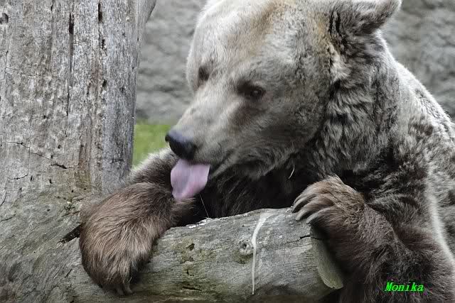 Bei den Braunbären verteilte H. Röbke heute Morgen Honig auf den Bäumen, so dass Siddy und Petzi eine Weile damit beschäftigt waren, diesen aufzuschlecken.