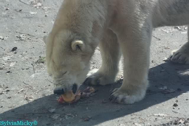 Heute wurden die Anlagen von Knut und Gianna und den großen Eisbären, wie vorangekündigt, sauber gemacht. Eine gute Möglichkeit die Großen bei der Fütterung auf der kleinen Anlage zu sehen.