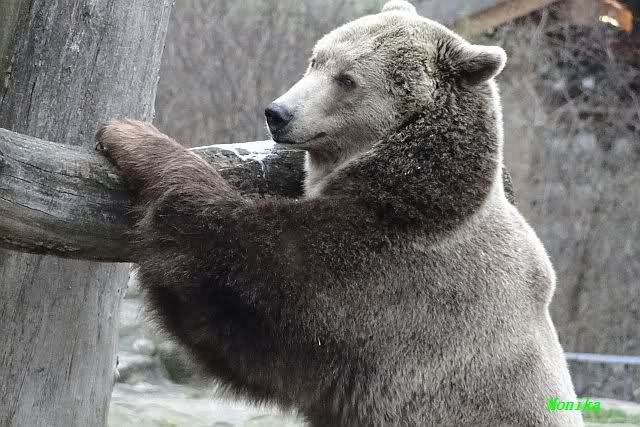 Katjuscha bearbeitete vor der Fütterung den Baum. Da man sie so nahe sehen konnte, sieht man erst richtig was für eine, trotz ihres Alters, sehr schöne, stattliche Bärin ist.