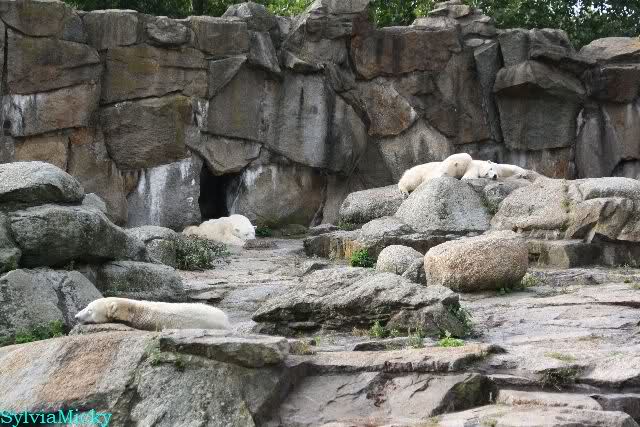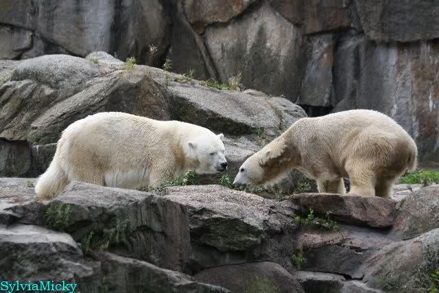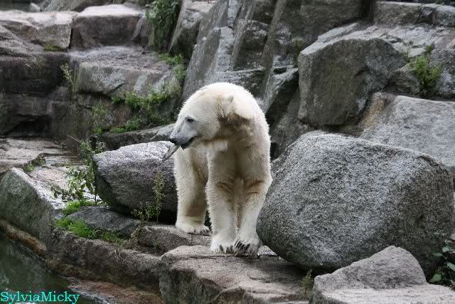 Entweder sind die Beschäftigungsmaterialien für die Besucher unsichtbar oder sie verschwinden während des Fotografierens oder wir haben Tomaten auf den Augen und wollen die Materialien nicht sehen oder - heaven forbid, ich mag es mir nicht vorstellen - die Anordnungen des Zoodirektors verschwinden auf dem Weg von der Verwaltung bis zu den Pflegern. Es gibt von dort jedenfalls die Antwort auf die Frage, ob dieses oder jenes Naturmaerial für die Tiere am Bärenfelsen mitgebracht werden darf, die Antwort: "Sie wissen doch ich darf nichts geben".