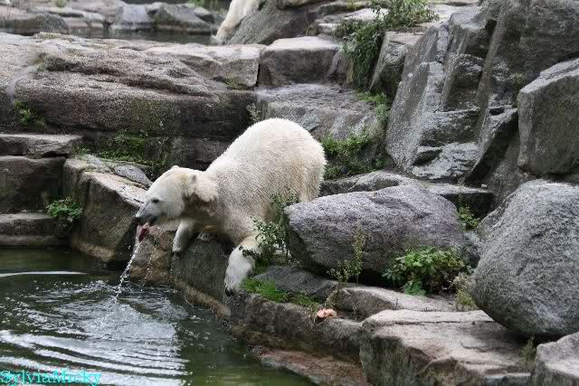 Und wie das alte Bild nur das Knut jetzt im Gehege ist .