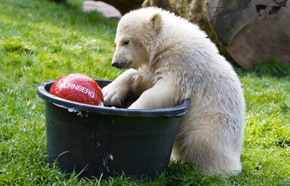 Smörebröd, Smörebröd - Römpömpömpöm. Heute machen wir Nürnberg-Ball nach einem alten Rezept von Oma Simona. Dazu nehmen wir einen schönen runden Ball - die roten sind am besten - und verrühren ihn langsam im Wasser... (Foto: Ralf Schedlbauer)