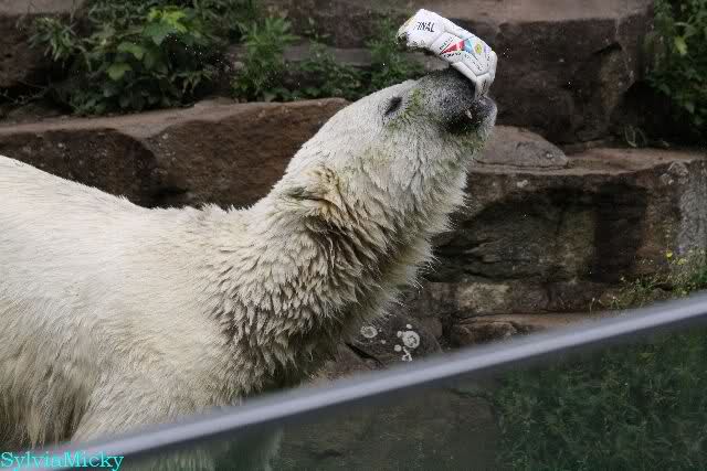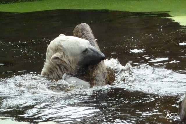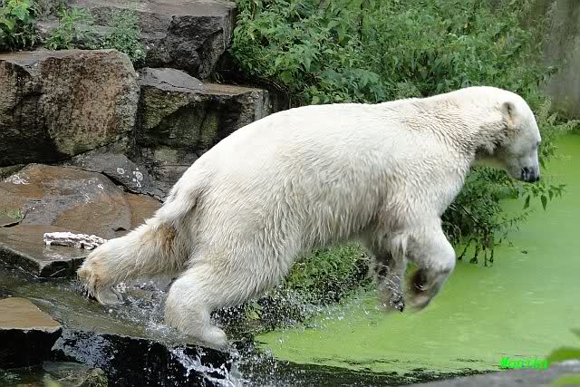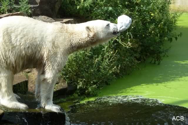 Als ich am späten Vormittag bei Knut ankam, war er am laufen. Kurze Zeit später ging er zum spielen ins Wasser. Er soll morgens auch schon schön gespielt haben.