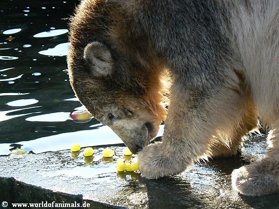 Guten Abend, liebe Knutianer-ich war heute ca. 3 Stunden bei Knuddel-Knut. Ich habe noch nie einen so schmutzigen Bären gesehen. Nur die Augen schauten mit weißem Rand lustig hervor. Der Kopf war fast von schwarzer Farbe. Der Körper tri-color. Aber er sieht dann besonders klein und niedlich aus. Eine Dame aus Bayern, die extra wegen Knut alle 4 Wochen angeflogen kommt, schenkte ihm wieder die schönsten Weintrauben,die er dann auch ganz genüßlich verspeiste. Seinen Jutesack benutzte er dann wieder als Sexspielzeug- wirklich frühreif der Junge..! Sein Hinterbein zitterte dann auch wieder. Aber dieses Mal rief keiner nach dem Tierarzt.Und wir dachten seinerzeit schon an Epilepsie! So ein Schlingel.Im Zoo wurde heute ein Spielfilm gedreht, Es spielen dort wohl auch bekannte amerikanische Schauspieler mit. Auf jeden Fall verzögerte sich dadurch die Mittagsfütterung, denn hauptsächlich wurde vor dem Braunbärengehege gedreht. Herr Dörflein war dieses Mal weder der Haupt-noch der Nebendarsteller. Er musste lediglich mit dem Eimer rasseln,damit die Bären ein nettes Gesicht machen sollten, Das Mulchbett macht inzwischen ein erbarmungswürdigen Eindruck. Selbst wenn es aufgeschüttelt ist, sieht es furchtbar aus. Darum ist Knut natürlich auch so schmutzig. Hoffentlich wird es bald mal erneuert. Dann wurde erzählt, dass die 3 großen Eisbärdamen in die Höhle genommen wurden,da sie angeblich alle drei schwanger seien. Ob es stimmt, weiss ich nicht-ich würde es fürchterlich finden, denn wie sollte das denn gehen. Wo sollte dann der arme Lars hin?Müssen wir nun mal abwarten.