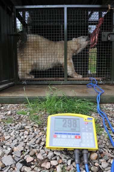 “Mercedes’ keepers have done an excellent job in gradually and gently enticing her onto the scales that are placed in a small passageway that connects her two roofed den areas. Although Mercedes is actually quite gentle for a polar bear, we still need to be very careful when working close to her, even when separated by a wall of steel mesh, as she is very capable of harming any one of us. The real drive to get her weighed accurately is to allow us to carry out a comprehensive health check. She gives all the signs of being in perfect health, but she is at the upper end of a polar bear’s lifespan and we want to ensure that we are not missing any potential age-related problems that may reduce her quality of life if they are not dealt with. All wild animals are pre-conditioned to hide illness to avoid predation or harassment, and a zoo polar bear is no exception, so her pending health check is very important.”