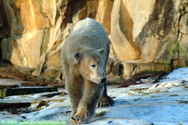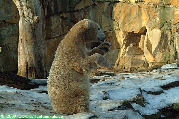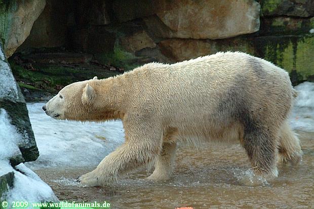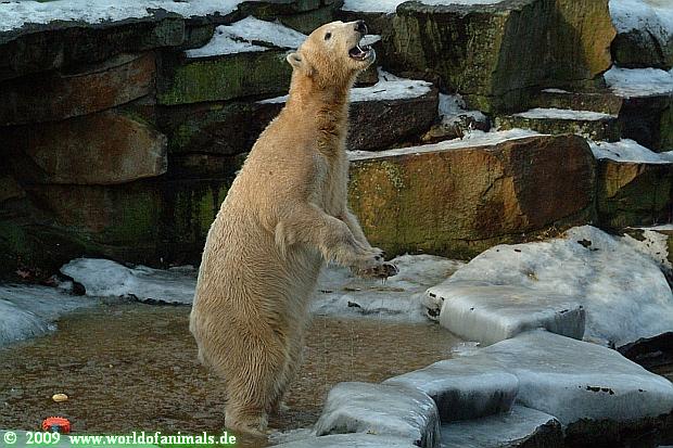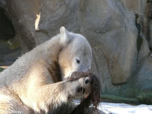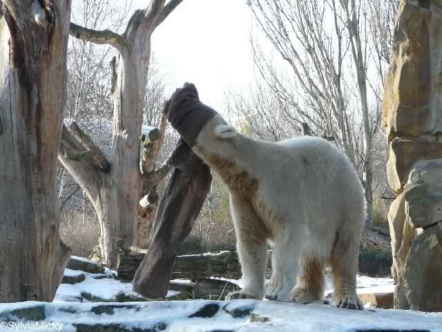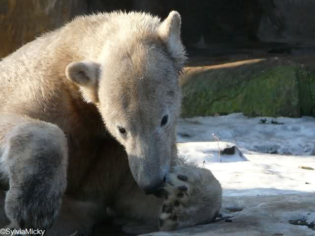 Good evening to you all Knut friends. Back from Zoo. It was a sunny day until afternoon. It is very difficult for Knut to walk over his enclosure, because the enclosure is very much freezes over.