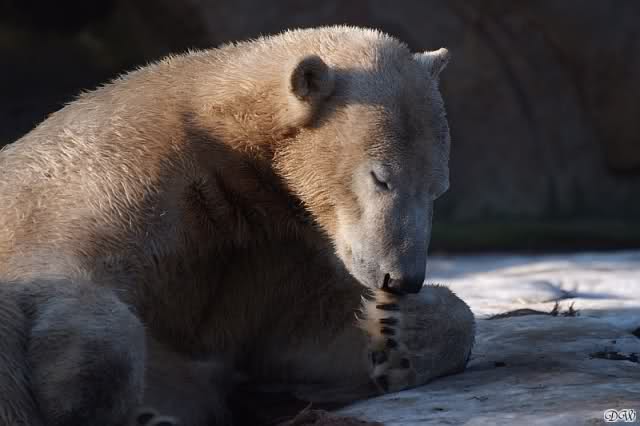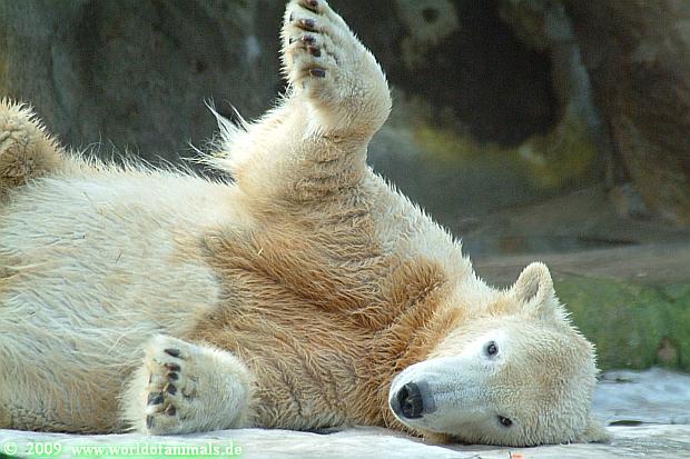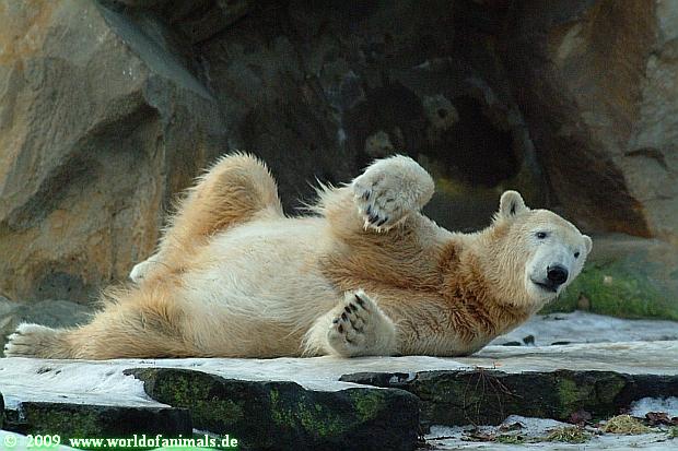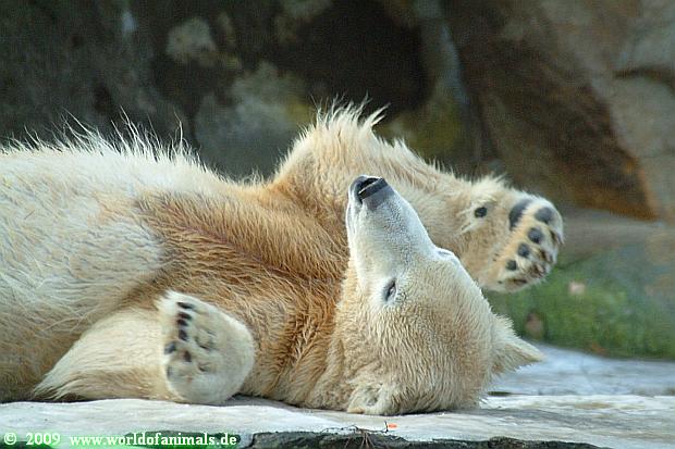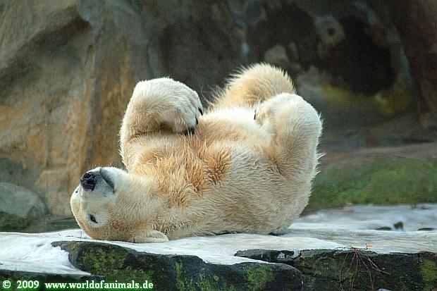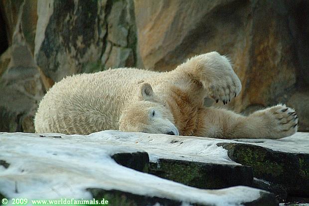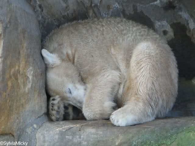 Als ich heute in den Zoo ging, lag Knut in der Felsennische. Wie mir eine Zoobesucherin erzählte ist Knut heute vormittag öfters ausgerutscht. Er fühlte sich wohl in der Nische sicher. Auch im Laufe des Tages rutschte er aus. Warum allerdings dies bei einigen Zoobesuchern Gelächter auslöst, vermag ich nicht zu verstehen. Was ist so lustig daran, wenn Knut ausrutscht und sich vielleicht verletzt? Das ist wohl der Unterschied zwischen Tierfreunden und Zoobesuchern.