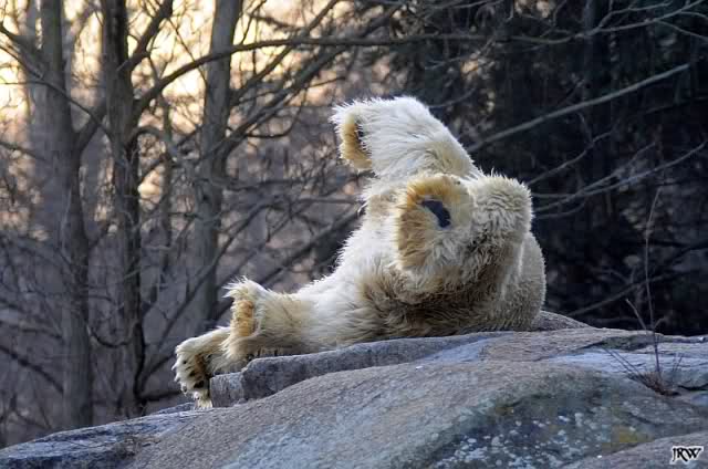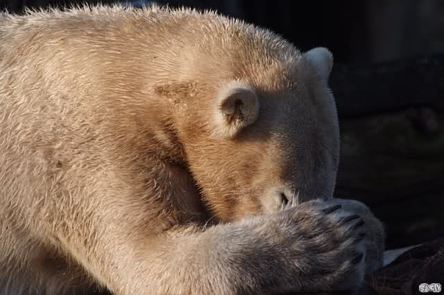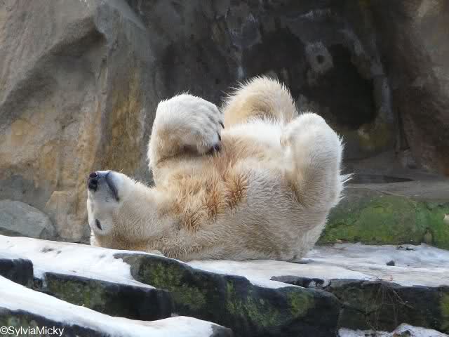 Ich habe noch kein Foto gesehen wie das auf dem Knut sich so in diesen Felsvorsprung knautscht. Was ihn dazu bloss veranlasst hat?