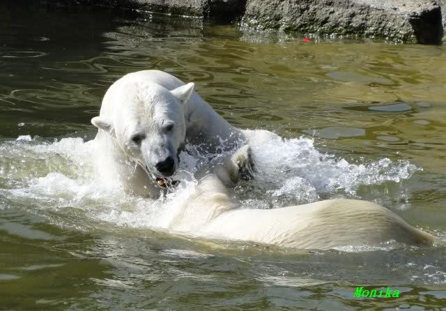 Eisbären toben so im Wasser. Schauen sie sich doch mal Filme an die Eisbären in der Wildnis zeigen. Die spielen auch nicht anders.