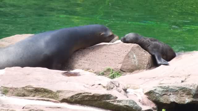Und im Moment gibt es im Aquapark vier kleine Seelöwen, die sind ganz entzückend. Noch unbeholfen, aber schon richtig frech