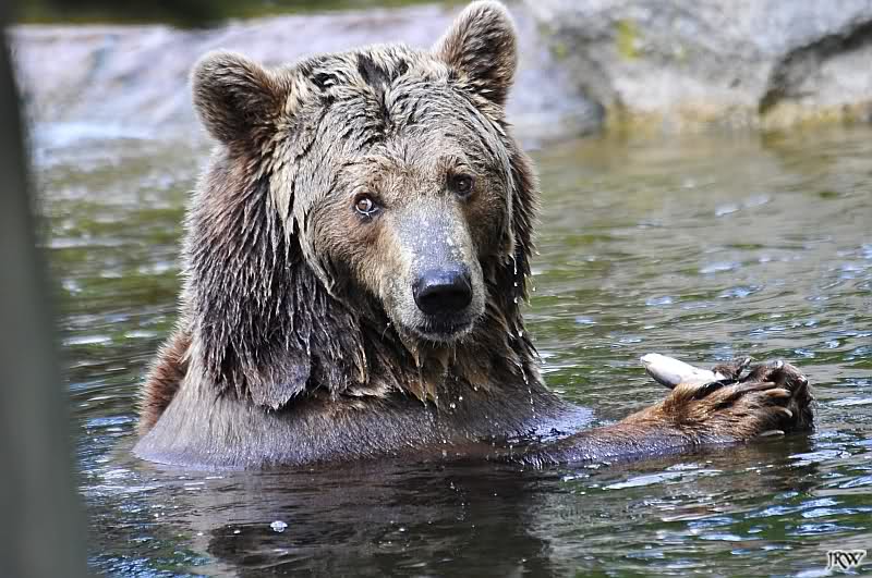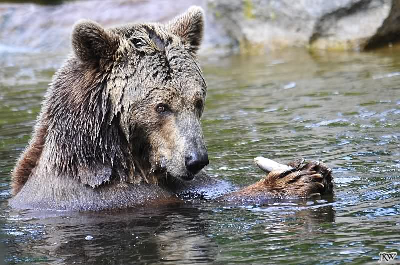 Siddy's Tunnel ist noch da. Die beiden Bären werden jetzt meistens separat gefüttert. Nur so bekommt Petzi etwas ab. Sie hat zur Zeit sehr große Angst vor ihrer Tochter und verschwindet schnell in der Höhle wenn sie in ihre Richtung läuft