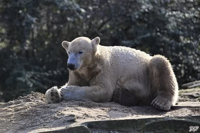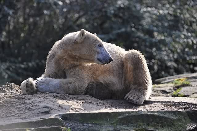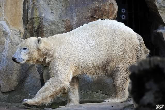 Knut war auch am Spätnachmittag noch schön sauber. Es fing sehr bald an zu regnen und da er keinen Regen mag, war er froh als endlich das Tor geöffnet wurde und er verschwinden konnte. Danach ward er nicht mehr gesehen. Schön war er allemal!