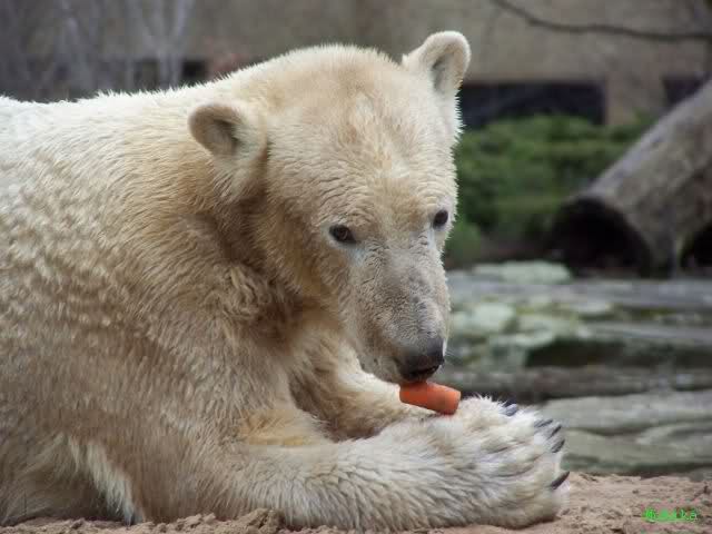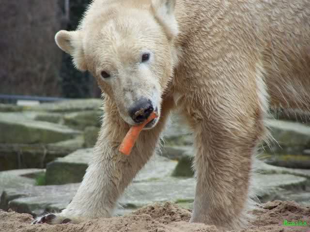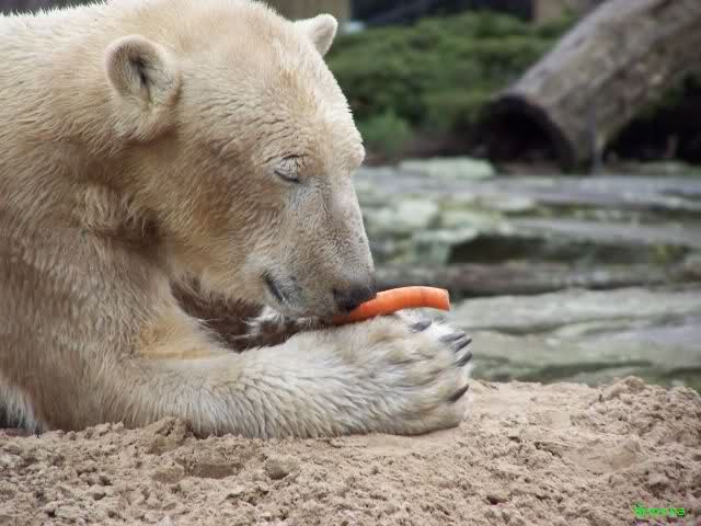 Nachdem es heute wieder reichlich zu essen gab, spielte Knut anschließend mit seiner Möhre, bis er sie dann auch endlich vernichtete.