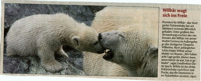 Do., 01.05.2008 SWR BW um 12:05 Uhr: Alles Knut oder was? (allerdings steht hier der Untertitel "Eisbärennachwuchs in Nürnberg" dabei)