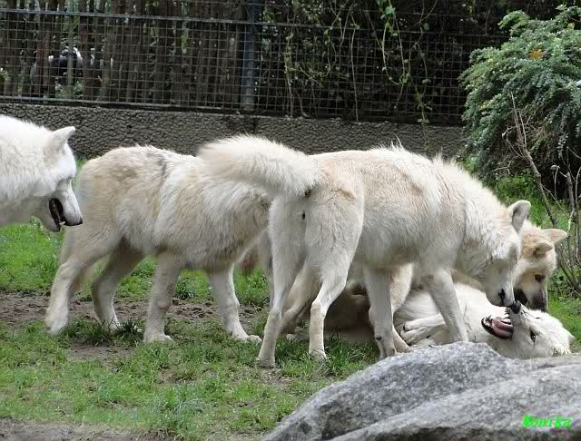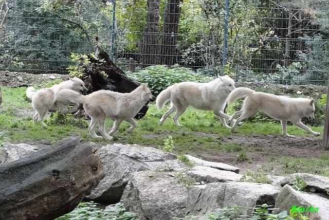Die Wölfe waren in Spiellaune und rannten über die Wiese.