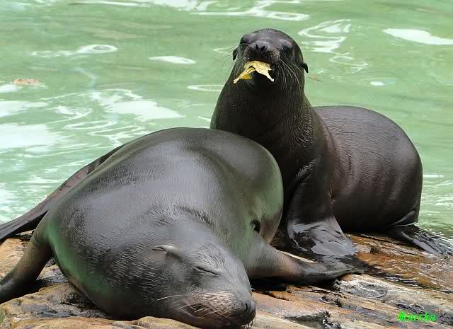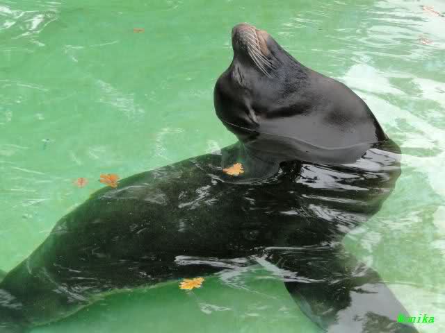 Das kleine Seelöwenmädchen hatte Spaß mit einem Blatt.