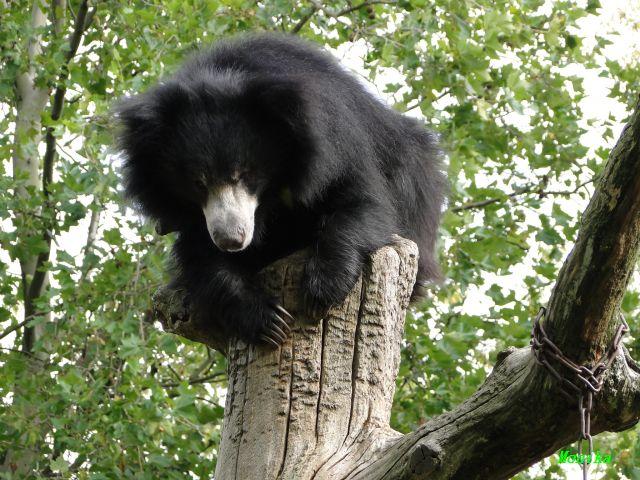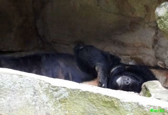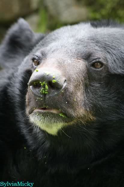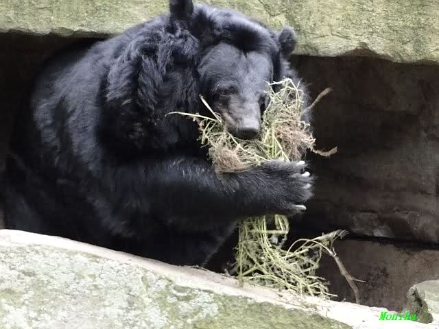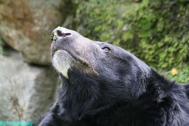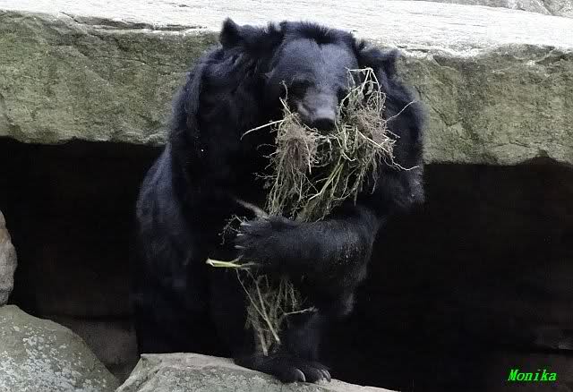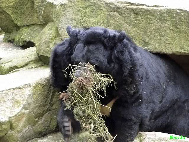 Der Kragenbär spielte eine ganze Weile mit dem Grünzeug. Dann verteilte er es auf dem Boden in seiner Höhle und legte sich darauf schlafen.