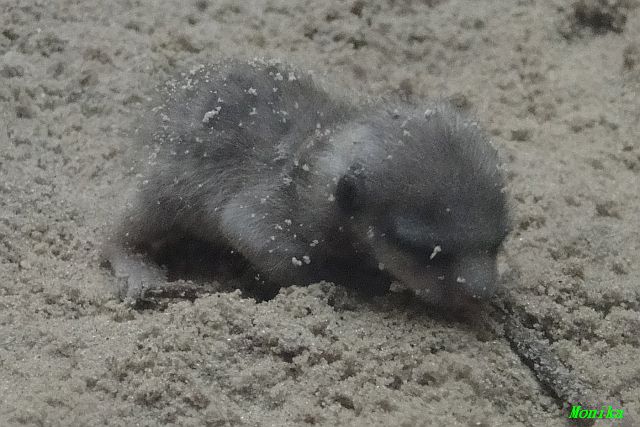 Vor 5 Tagen gab es wieder Nachwuchs bei den Erdmännchen. Dieses Kleine lag ganz alleine und zitternd vor der Glasscheibe.