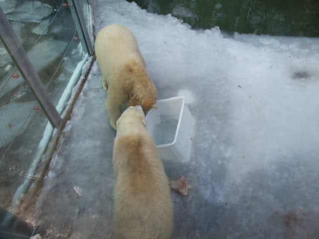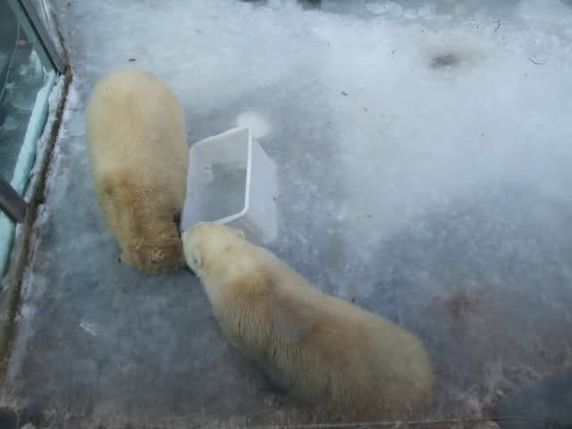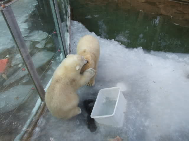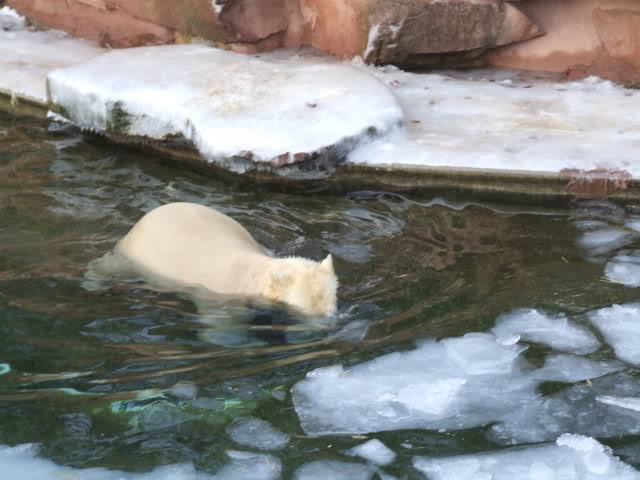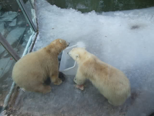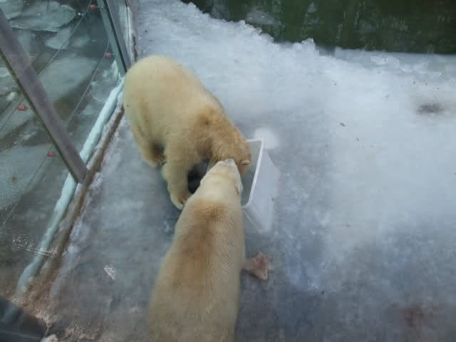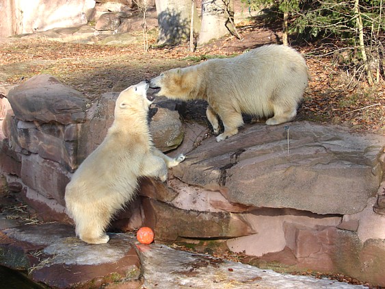 Schöne Bilder, die Anlage sieht jetzt ganz anders aus als bei unserem Besuch vor ein paar Wochen; kein Eis mehr auf dem Wasser, das Spielzeug nicht mehr eingefroren. Die beiden Bärchen fühlen sich ganz wohl!