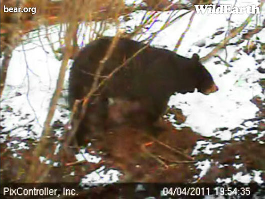 Heute Abend, als dies geschrieben wurde, kamen Lily und Hope einige Male zur Höhle zurück. Wir hörten Äste brechen und vermuteten dass sie Kätzchen oder Knospen fressen. Werden sie zur Höhle zurückkommen? 2007 verließ June mit ihren drei Jungen während einer frühen Schmelze ihre nasse Höhle, doch kehrte eine Woche oder so später zurück als das Wetter wieder kalt wurde.