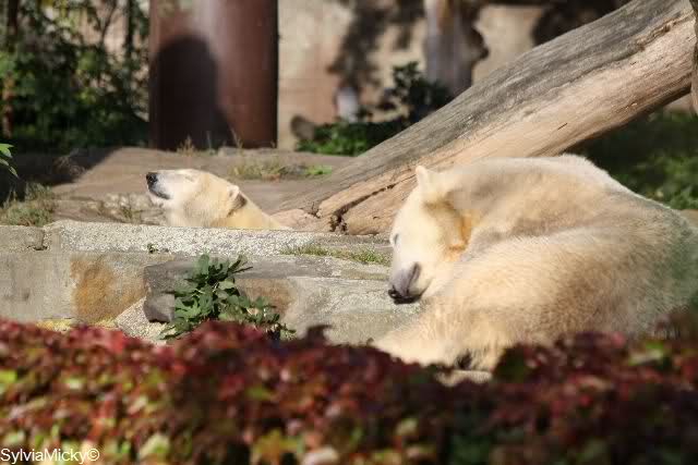 Im Augenblick liegen unsere beiden Lieblingseisbären friedlich in der Sonne und schlafen tief und fest.