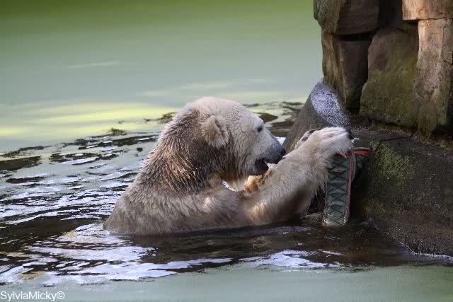 Vielen Dank, Natty, für die Informationen zu Giovanna, ich hatte erst später gelesen, wie und womit sie in München gespielt hat. Schade, dass sie hier nicht ihr Spielzeug bekommt, aber unser Knut wird ihr schon von seinem Spielzeug abgeben.