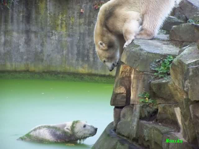 Doris, Gisela, Monika, Hartmuth and all zoo reporters - This is the parrot again thanking you all for keeping me and other non-Berliners updated. How wonderful it was to see Knuti playing in the water again. That must be a good sign!