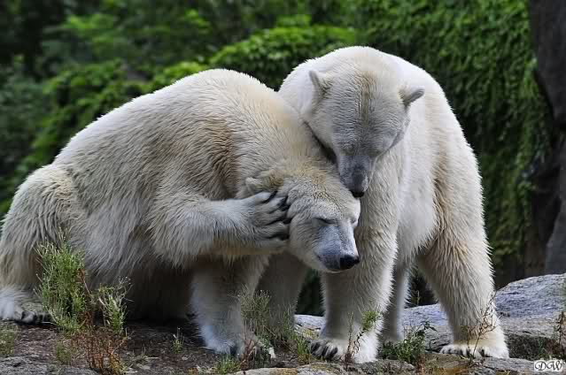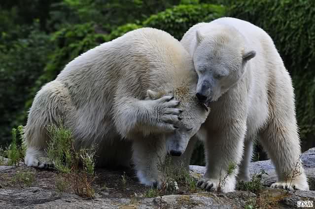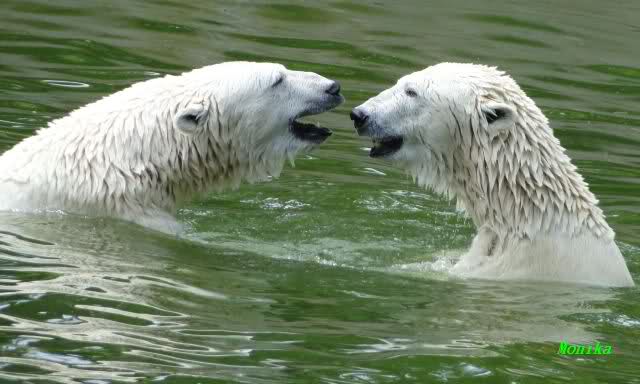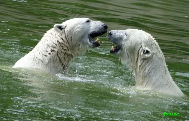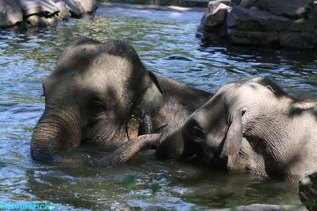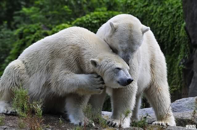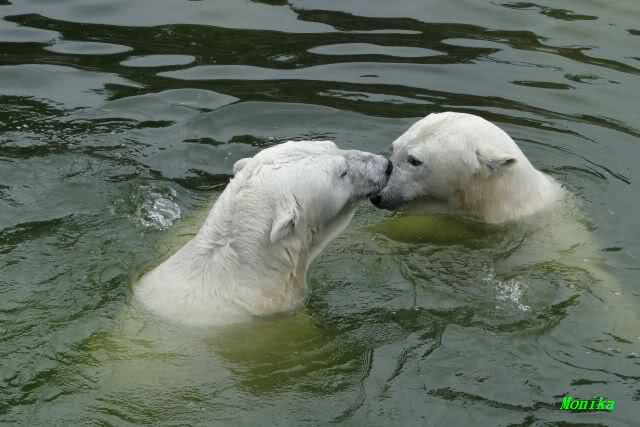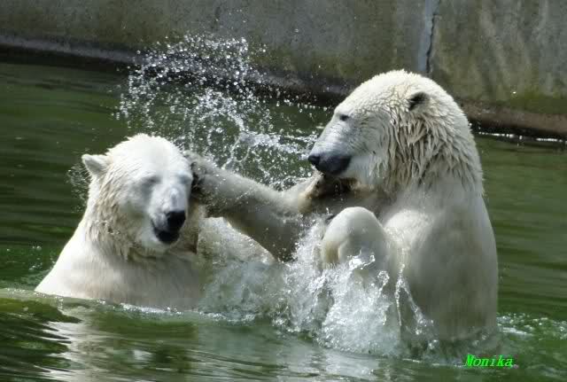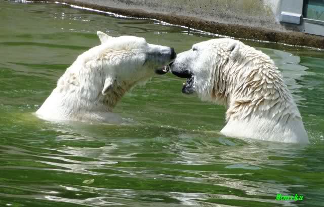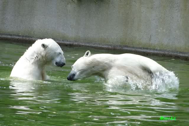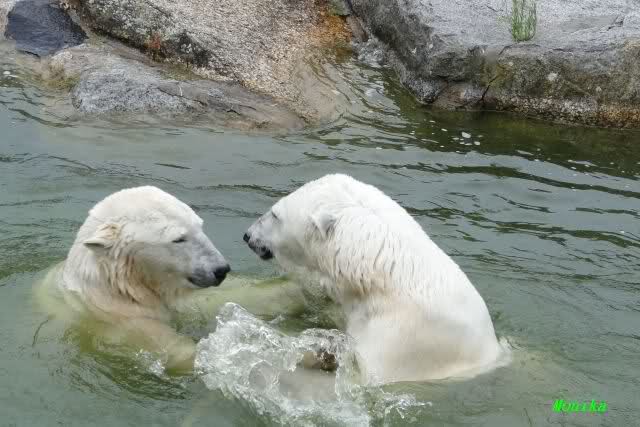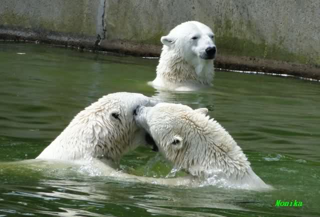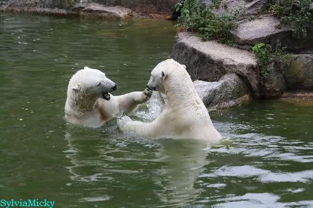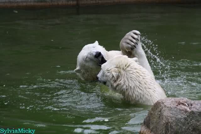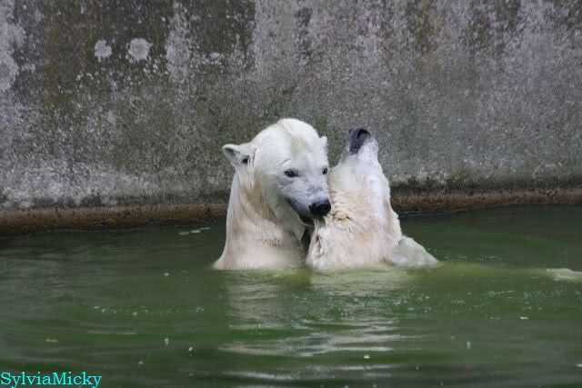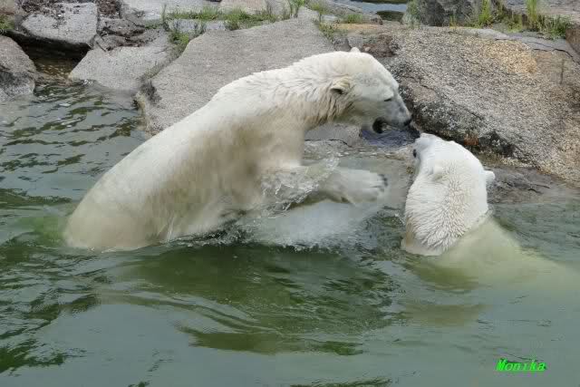 Wie schön, dass sie zusammenbleiben dürfen. Wenn sie mit sich selbst beschäftigt sind, werden sie den Kleinen nicht zu sehr erschrecken. Vielleicht wirft Tosca ihn ja auch mal ins Wasser, wie sie es in den vergangenen Tagen zweimal mit Nancy gemacht hat.