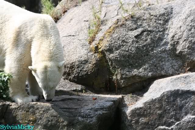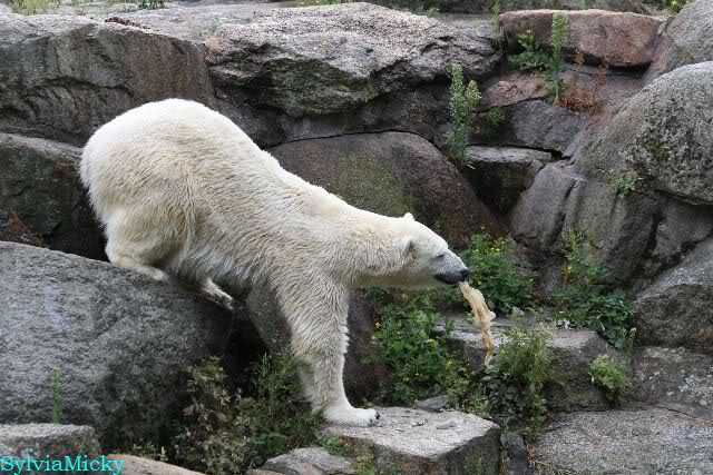Heute wurden den großen Eisbären viele Möhren auf die Anlage geworfen! Ich habe dies zum ersten Mal gesehen. Tosca und Nancy verspeisten sie sichtbar mit Genuss.