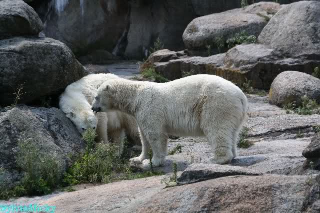 Katis Verhalten erinnert an Knut. Sie schläft lange, steht langsam auf, läuft sehr langsam über die Anlage und läßt sich nie hetzen.
