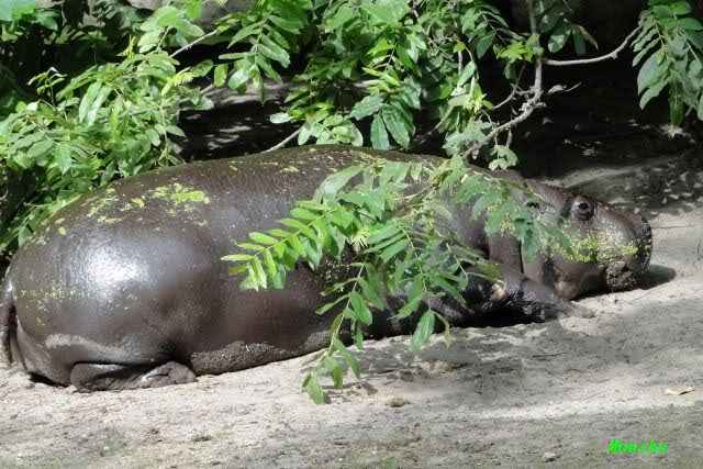 auch das Zwergflußpferd hat Algen in seinem Pool