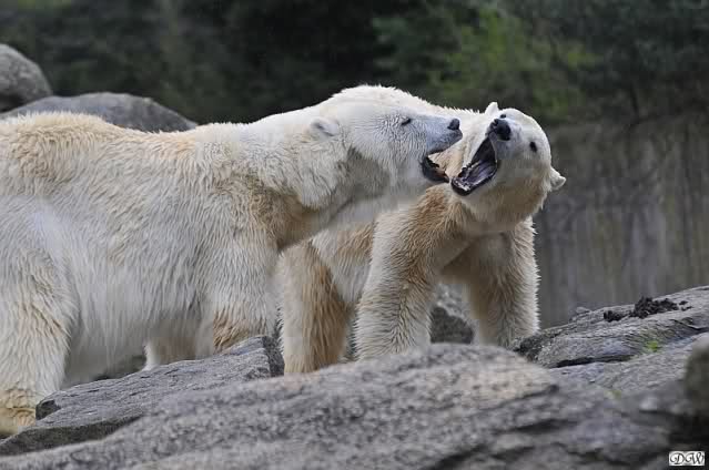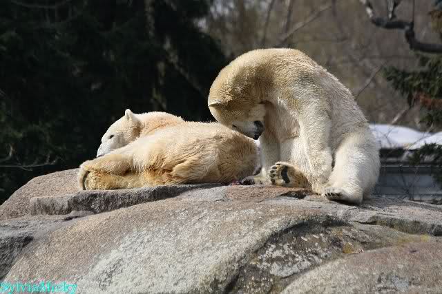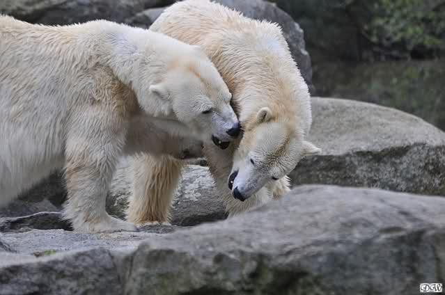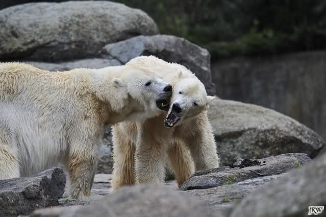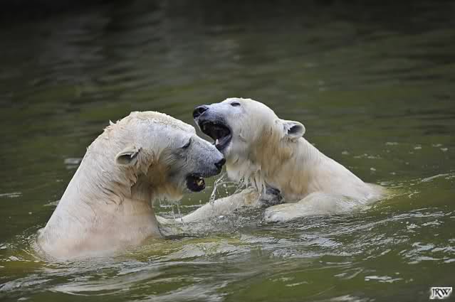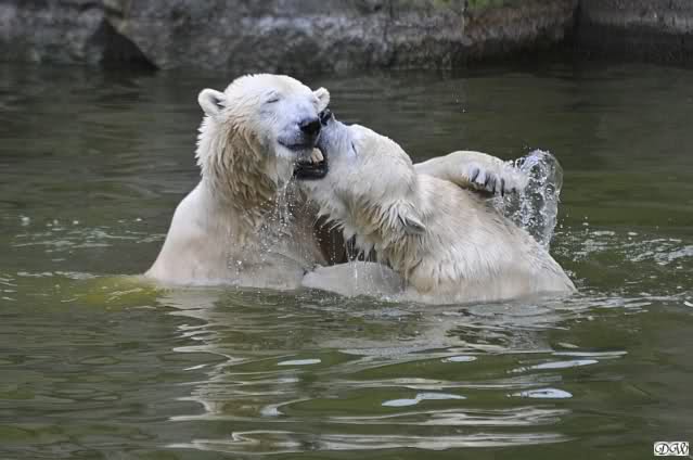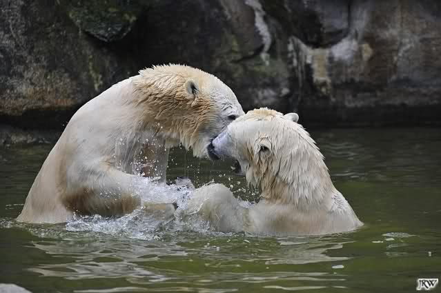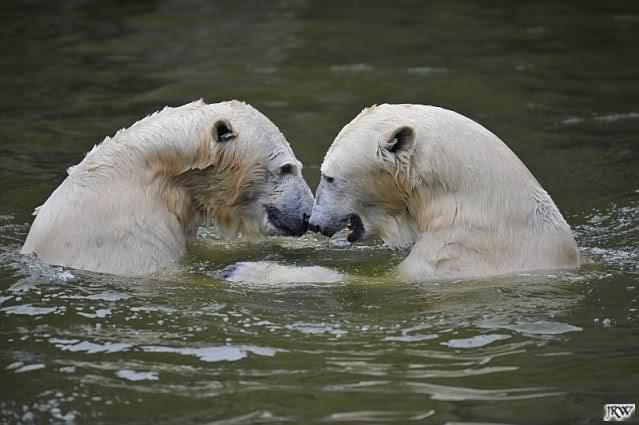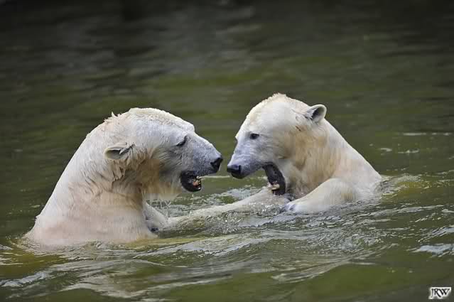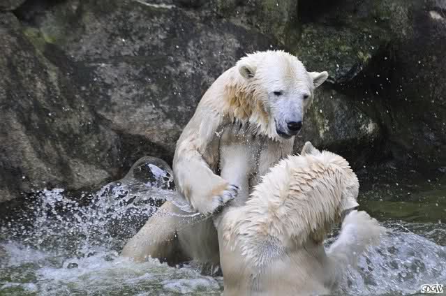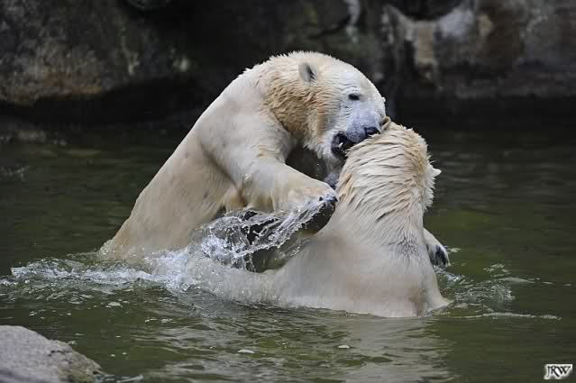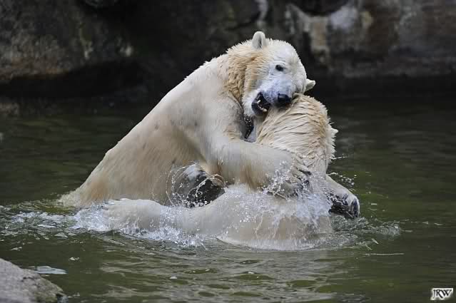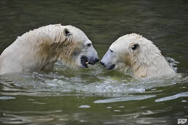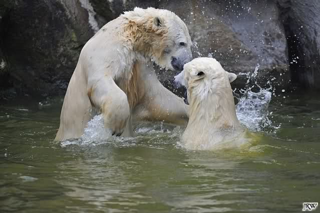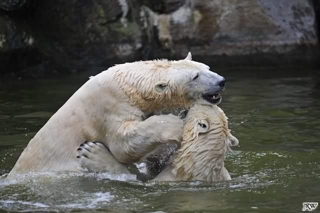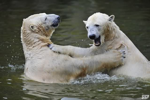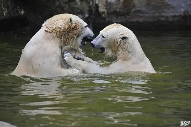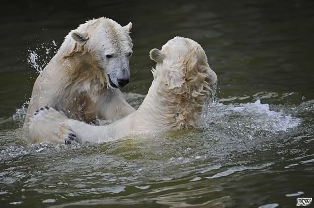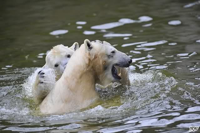 Sylvia, wie gut, dass Du darauf hingewiesen hast, dass die großen Eisbären nicht etwa spielen. Sie machen Wassergymnastik und die Kindermütze haben sie weggeräumt. Ordentliche Eisbären haben wir.