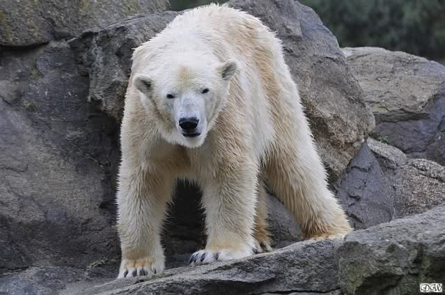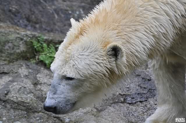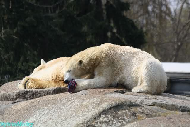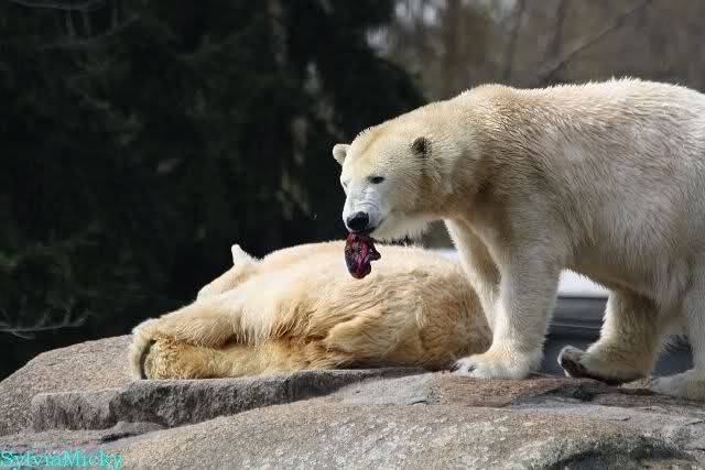 Bilder noch von gestern. Eine von den nicht spielenden Eisbären beschäftigte sich mit etwas. Soll eine Wollmütze gewesen sein.