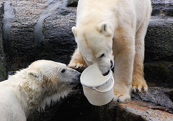 Menschen, die auch mal ihre Mütze schwenken oder von einem kleinen Schwächeanfall direkt am Gehege heimgesucht werden, während sie versuchen sich an einem Kartoffelsalateimer festzuhalten, sorgen dafür, dass die Bären sich nützlich machen können. Und es ist doch wirklich ein Augenschmaus zu sehen, wie die Damen Eisbär sich ihr Futter verdienen, indem sie ihr Gehege aufräumen. Es geht eben nichts über eine weibliche, ordnende Tatze oder Schnauze!