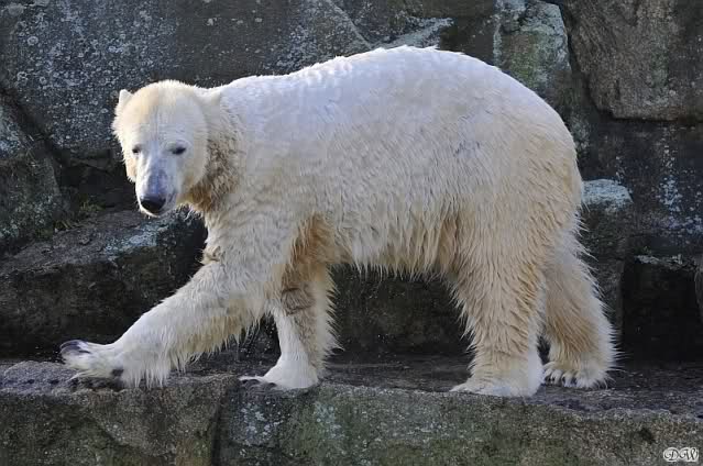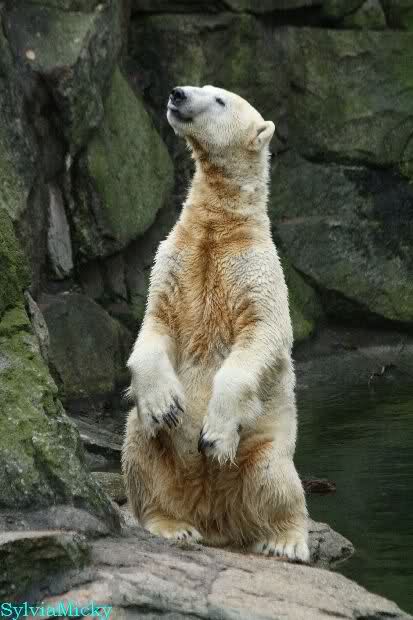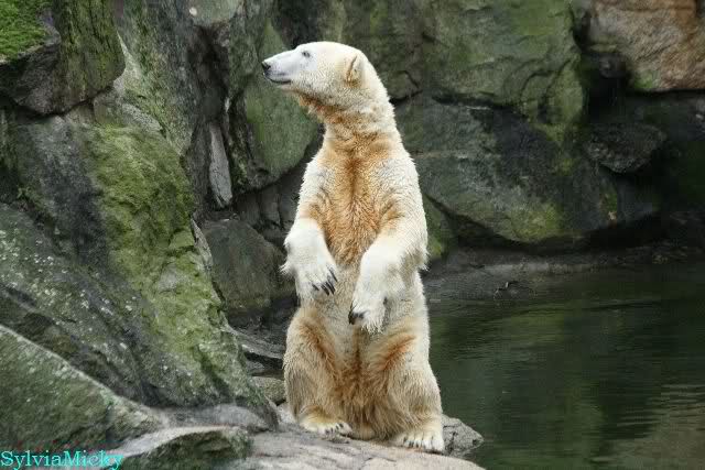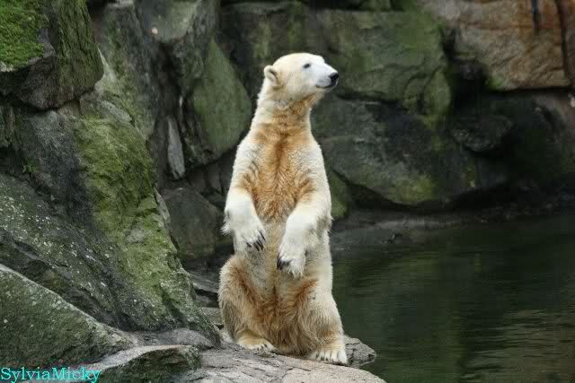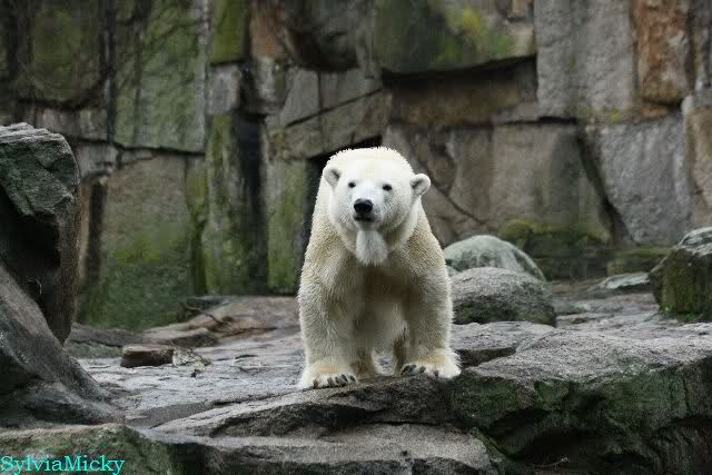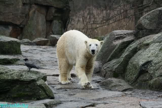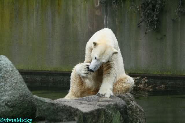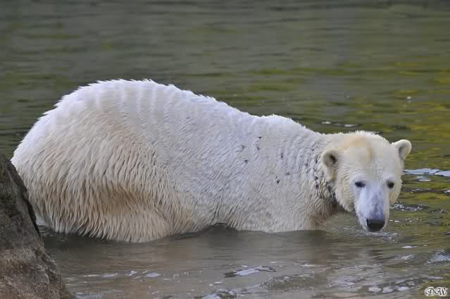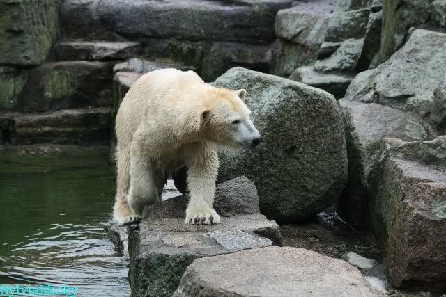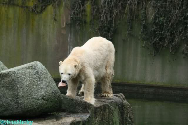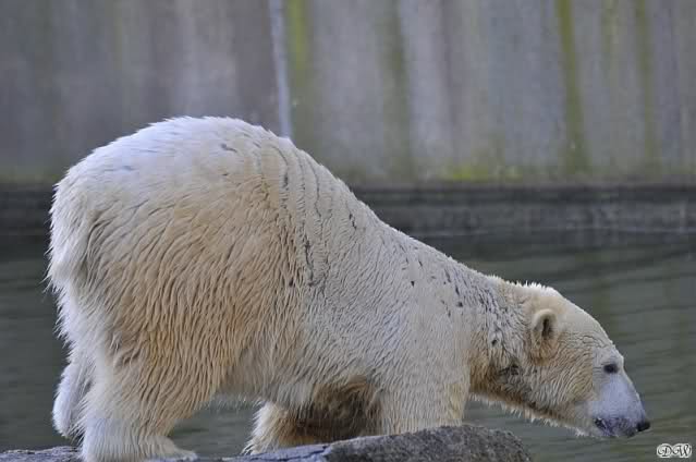 Wie mir eine Knutfreundin erzählte war Knut heute früh an der Scheibe. Kati ging ins Wasser und Tosca hinter. Als Knut Kati sah, ging er in die rechte Ecke. Da war er auch als ich um halb zehn im Zoo war.