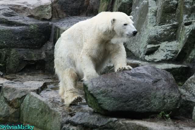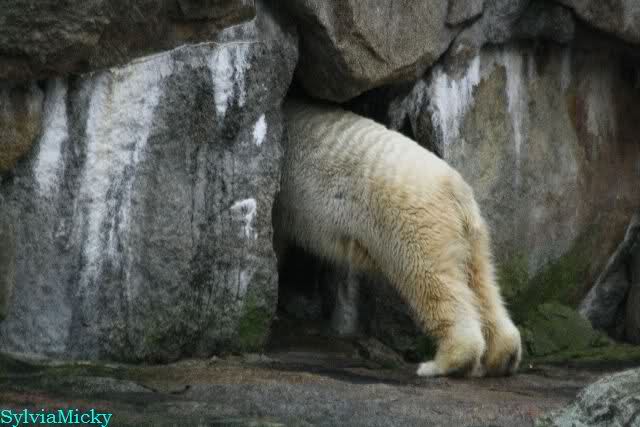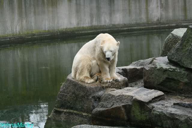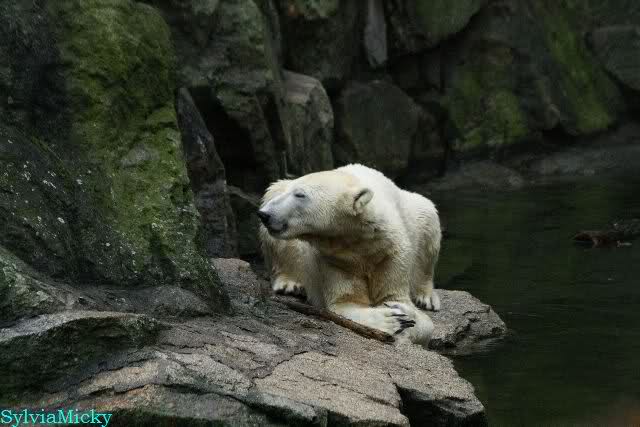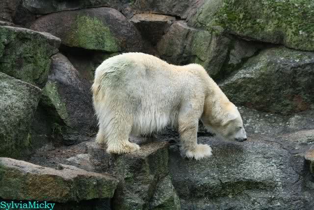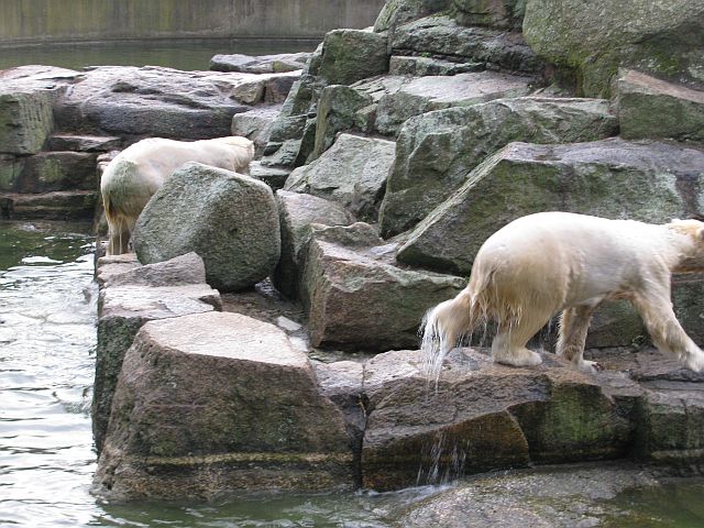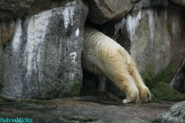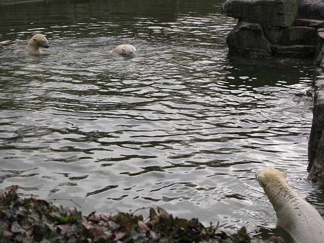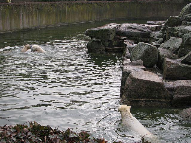 Nach dem Besuch des Affenhauses schlenderten wir nochmals zurück zu Knut. Aber die Eisbären hielten ihre wohlverdiente Mittagsruhe. Wir sahen ihnen eine Weile dabei zu. Dann gingen wir zum Ausgang.