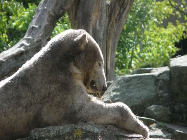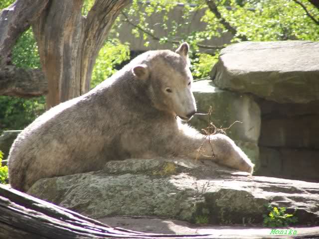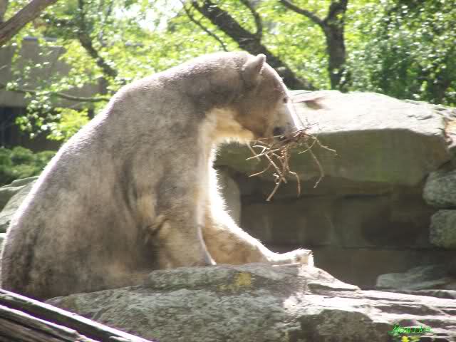 Heute war es ein sehr stürmischer aber sonniger Nachmittag im Zoo. Knut machte einen zufriedenen und ausgeglichenen Eindruck. Er lag viel in der Sonne, beschäftigte sich mit dem Nackthuhn und Zweigen.