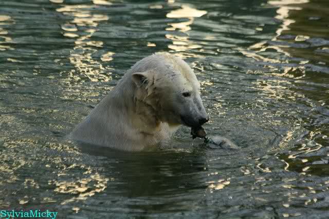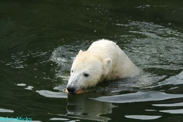 Knut fand beim schwimmen noch ein wertvolles Stück Fleisch
