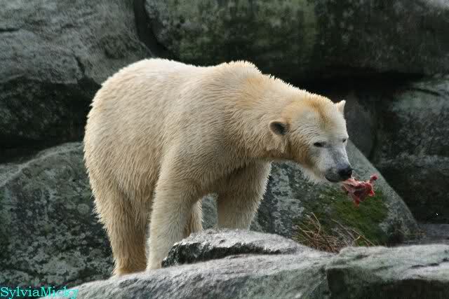 Auch die Mädels guckten verdutzt. Nancy und Kati sind total leer ausgegangen. Sie standen noch lange da und warteten vergeblich. Es gab heute wirklich sehr wenig Fleisch. Das was Knut und Tosca gefressen haben, war nicht sehr üppig, wenn man beddenkt, dass das Futter eigentlich für alle vier Bären gedacht war.