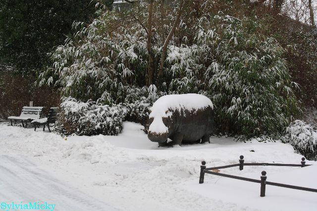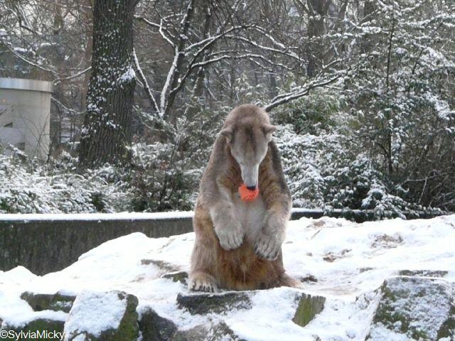 Winterwelt im Zoo. Es hat heftig geschneit, und im Gegensatz zu gestern war es heute ja schon fast "warm".