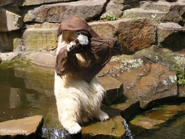 Aber zuvor gab´s natürlich noch die Eisbärenfütterung. Die machte heute wieder Herr Dörflein, sehenswert wie immer. Er wurde wieder von kleinen Kindern und Damen mittleren Alters belagert, auch wie immer.