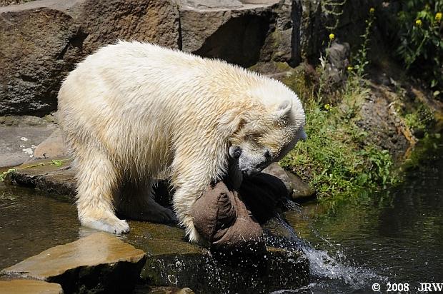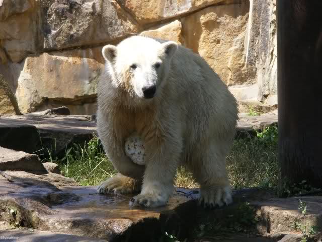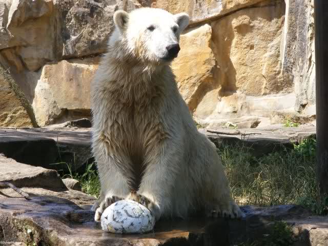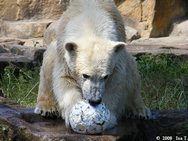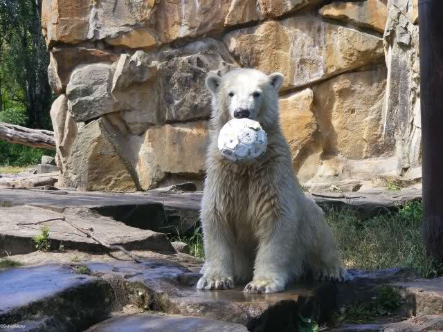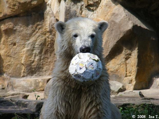 Wie ich sehe, hat Knut ja auch schon für die Fußball WM trainiert. Besser wäre es natürlich, wenn er mit einem Eishockey trainiert, denn als Maskottchen der Mannschaft der Berliner Eisbären würde er sich gut machen.