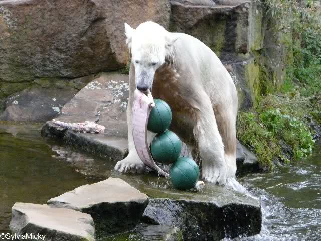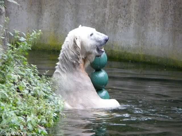 Ich hörte, dass unser Lieblingsbär dabei ist, alle möglichen Verwendungszwecke für diese "Kugelpflanze" auszuprobieren. Auch 'Stiftung Knut-Test' war schon angesagt. Aber wie dumm: das Teil gibt nicht nach.